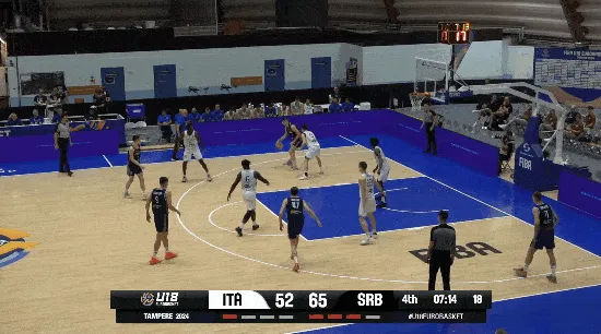 在空切和突破方面,萨尔也做的差强人意。他没有娴熟的运球,在U18里经常出现运球加速到一半被打断,夹击打乱节奏导致护球不稳定的问题。然而,在面对closeout时,萨尔则展现了自身强悍的一面,虽然身材偏瘦,但爆发力与敏捷弥补了这一不足。他的运球不够稳定,在欧洲顶级联赛面对经验丰富球员或是在U18面临同年龄段顶尖防守人时,常陷入摆脱不了对手或者被压迫丢球的困境里。由于缺乏力量,萨尔在强突时容易受阻,在对抗中易失衡,更依靠速度而非身体对抗。不过在杜克,他有着布泽尔吸引火力,作为一个接应手显然会得到更好的突破环境。而萨尔也慢慢磨砺了一定的抛投技巧,可以在行进间倚人利用臂展去出手。更遑论他在终结的时候会在条件允许的情况下尽可能扣篮得分,特别是在转换进攻的时候。而除持球突破外,萨尔在阵地战中还能通过空切冲击篮筐,他对空切的嗅觉显著高于杜克的其他高中生,且善于结合跑动和停滞来找到空档。而在油漆区内,他也可以利用臂展在各个角度完成出手。依托于优秀的敏捷性和弹跳,萨尔虽说体格瘦弱却依旧可以强硬终结。现阶段,萨尔尚未展现持球撕裂防守的能力,非纯得分手或微波炉型球员。